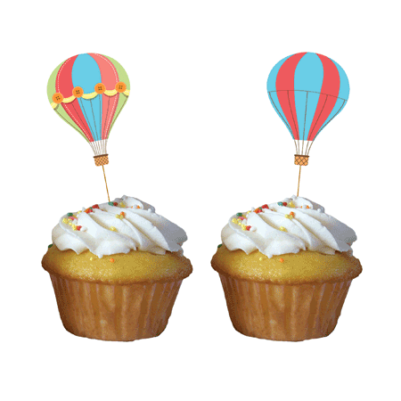 12 Picker (9x5cm) mit wunderschönen Pastellfarben für die Baby Ballon Party up, up and away in Form eines Heißluftballon.