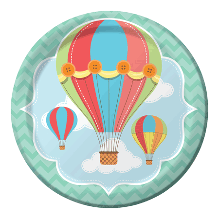 8 Pappteller in einem Set. Ø= 23 cm mit wunderschönen Pastellfarben für die Baby Ballon Party up, up and away.