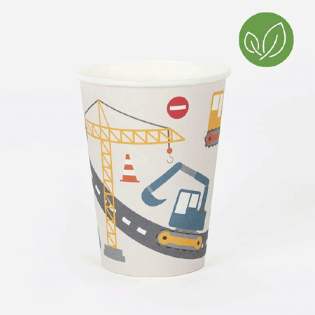 8 Partybecher mit Motiv Baufahrzeuge als "ECO Friendly" Proukt