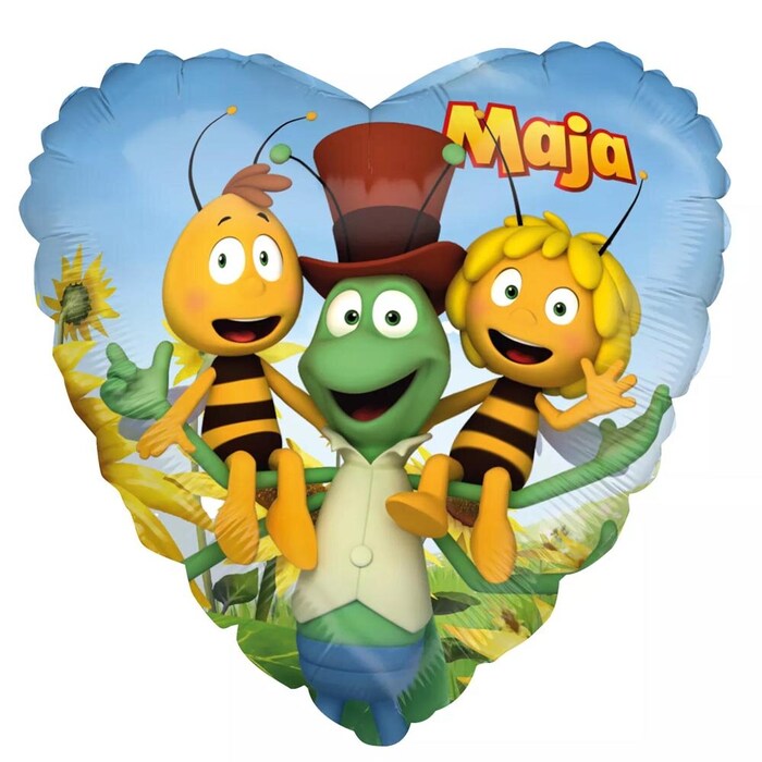 1 Folienballon mit Biene Maja, Willi und Flip Motiv in Herzform