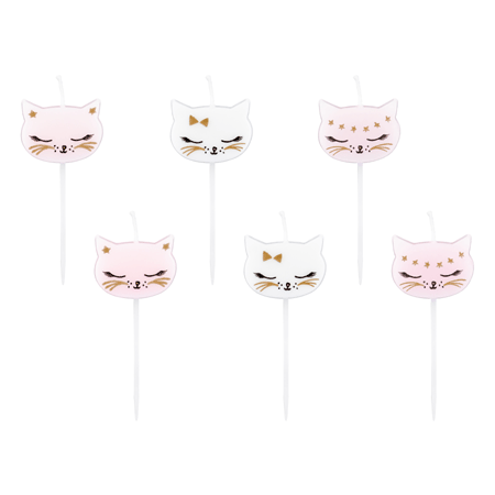 6 Kerzen mit Picker (inkl. Picker 5cm) Cats Meow für kleine Katzenliebhaber