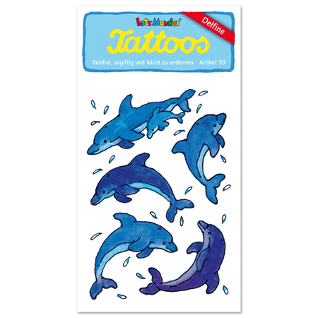 Tolle Tattoos mit Delfinmotiven auf einem Bogen als Gastgeschenk bzw. Mitgebsel. 1 Bogen ca. 10,5 x 5,6 cm