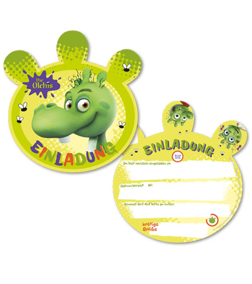 8 Einladungskarten in deutscher Sprache mit Motiven "Die Olchis"