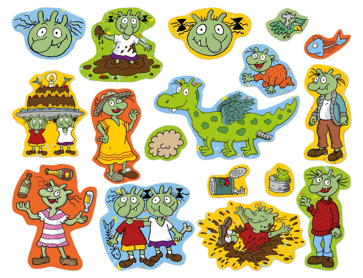 Die Olchis, besondere Geschöpfe, die in der Nähe von Müllbergen und Abfallgruben leben. Sie sind stinkefaul und dösen meistens in der Sonne. Einfach wunderbar diese Olchis! 3 x 17 Motive