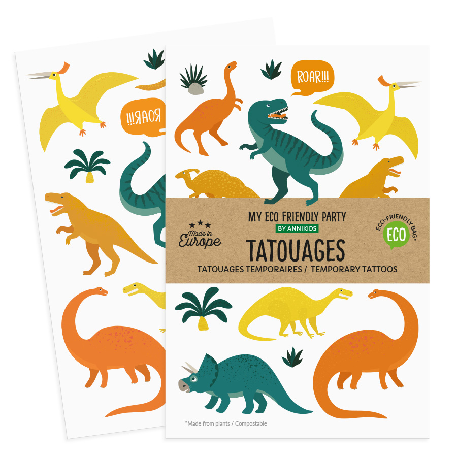 Für kleine Dino Fans: Dino Tattoos in vielen Varianten, die die Arme der Gäste zieren!