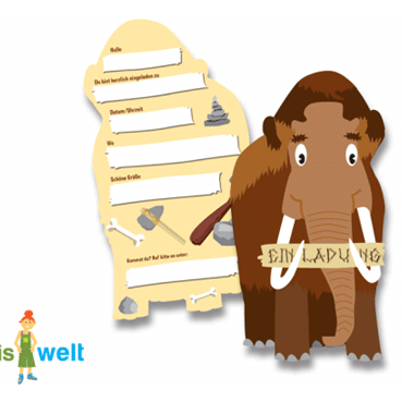 Tolle deutschsprachige Einladungskarten in Form eines Mammuts von DH-Konzept.