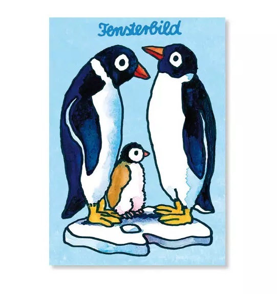 Schönes, postkartengroßes Fensterbild mit Pinguin Motiven von Lutz Mauder