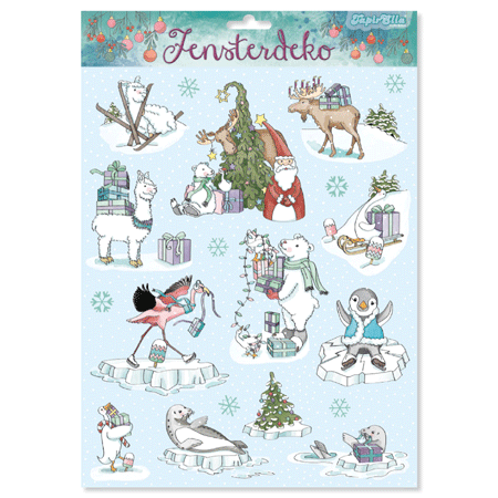 Wunderschöne Winterzeit - um auf das Fest Weihnachten sich einzustimmen ist dieses Fensterdeko, 239 x 299mm mit 18 verschiedenen Motiven, ein gute Idee. Niedliche Alpakas mit Geschenken, Rentier im Schnee, Pinguine auf Eisschollen, lässt Kinderherzen höher schlagen.