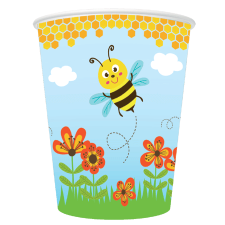 8 Pappbecher (256ml) mit niedlichen Bienen Motiv für den Kindergeburtstag