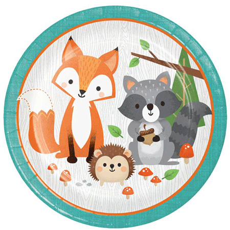 8 Party Teller mit Motiv Fuchs Woodland von creative converting mit den niedlichen Tieren Fuchs, Bieber und Waschbär