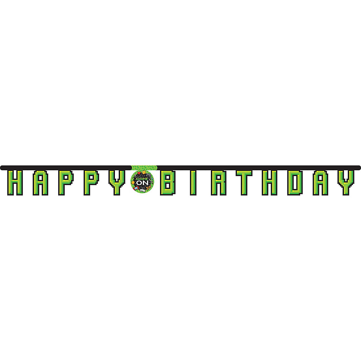 1 Happy Birthday Girlande für die Gaming Party von coolen Kids - überrascht eure Freunde