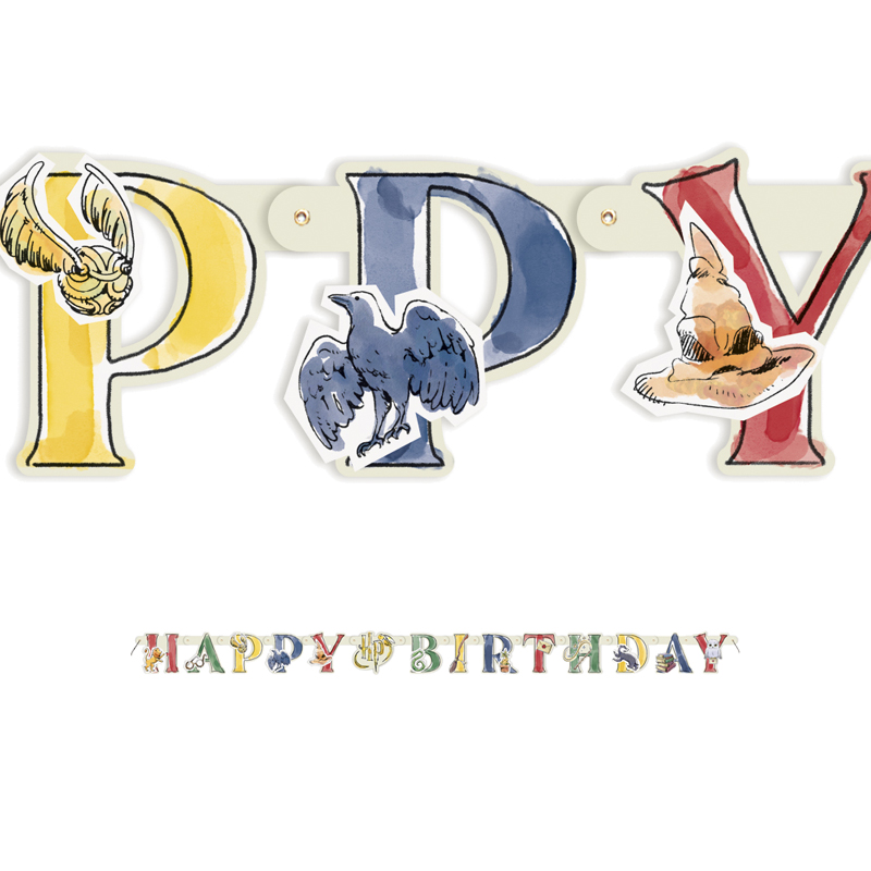 Girlande mit HAPPY BIRTHDAY zaubern eine schöne Deko beim Harry Potter Geburtstag.