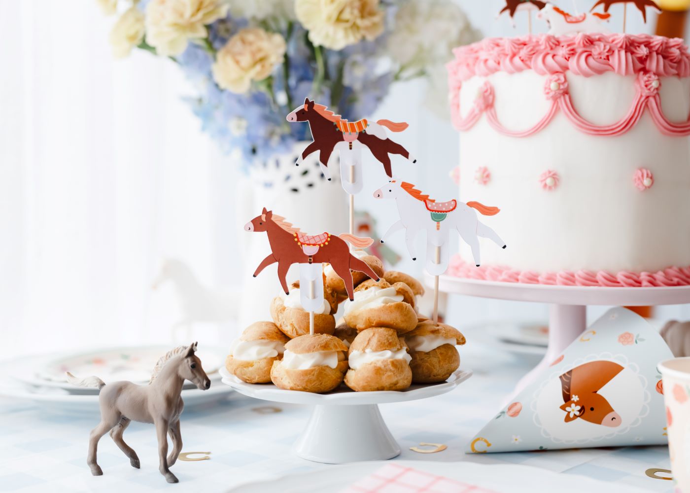 Kuchen Picker bzw. Cupcake Topper um die Torte zu schmücken. Auch schön für Muffins, kleine Naschkuchen oder Käsewürfel, Obstwürfel etc. wenn die Pferdchen aufgesteckt werden. Es gibt 3 verschieden Designs.