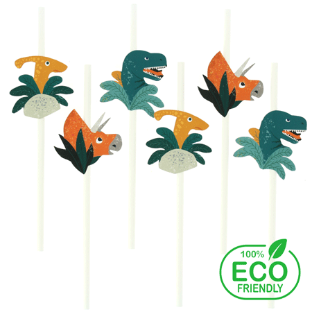 6 Dinosaurier Papierstrohhalme mit 3 Motiven. Perfekt abgestimmt mit den Bechern und anderen Artikeln des gleichen Themas, werden diese ökologischen Strohhalme von der schönsten Wirkung für eine Natur-Geburtstagsfeier sein.