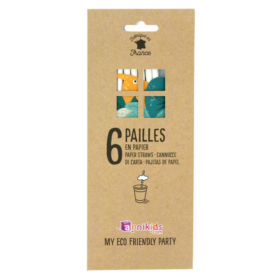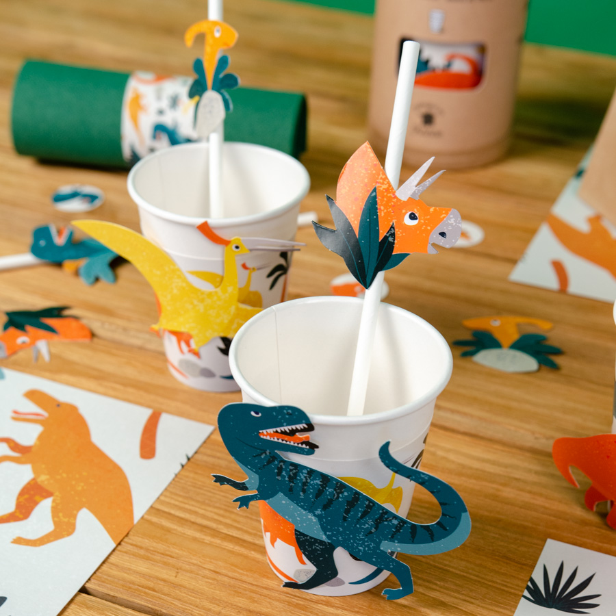 Diese Strohhalme aus Kraftpapier mit Papiermedaillons werden in einer umweltfreundlichen. plastikfreien Verpackung geliefert, sind recycelbar und Teil eines umweltfreundlichen Dino-Themas.