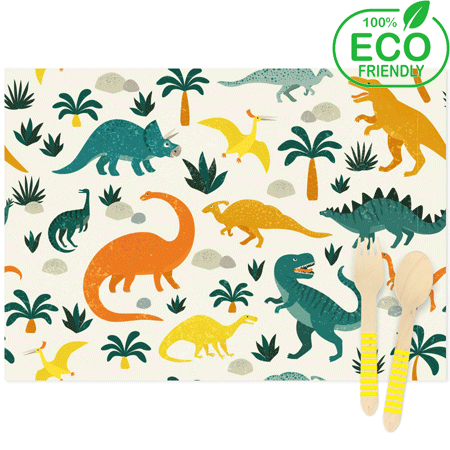 6 Papier-Tischsets Dinosaurier. Kombiniert mit den Bechern, Tellern und Serviettenringen entsteht ein schöner Naturtisch.