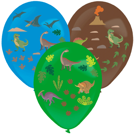 3 große Dinosaurier Luftballons mit Aufklebern die individuell auf die Ballons aufgeklebt werden können.
