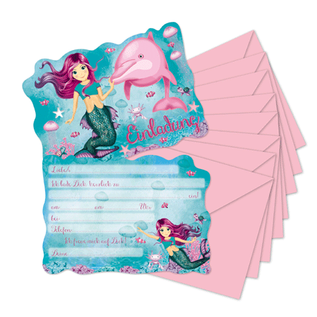 8 Einladungskarten mit Umschlägen aus der Meerjungfrau Coralie Serie von Lutz Mauder