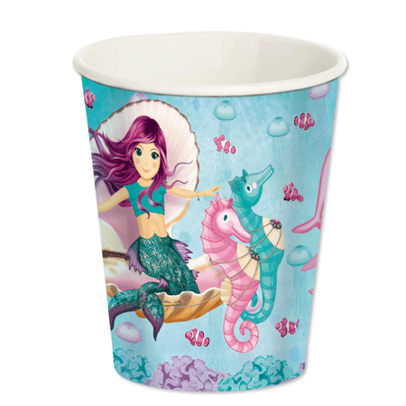Meerjungfrau Coralie Partybecher - niedlich gestaltet mit Meerjungfrau, Delfinen und Seepferdchen.....