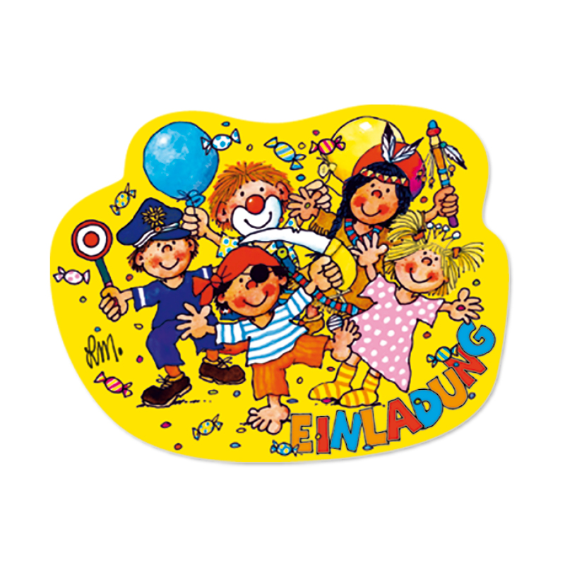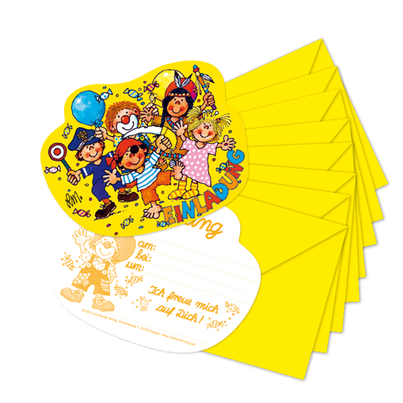 8 Einladungskarten - Party Kids für die Faschings- oder Karnevalsparty. Auch für jede Kostümparty für Kinder.