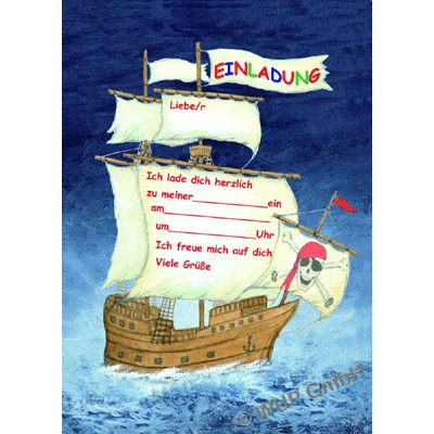 Pirat Party-Einladung Schiff 12 Stück mit Umschlägen