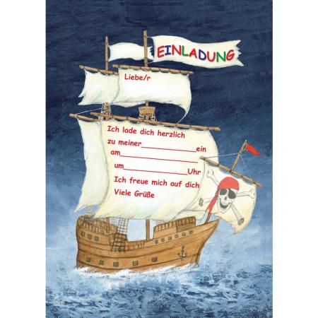 Piraten Party mit diesen Einladungen ist die Vorfreude besonders groß! Inhalt: Einladungsset 12 Blatt Einladungen mit 12 passenden Umschlägen Größe: DIN A 5 die Einladungen, DIN C6 die Umschläge Material: 100% Recyclingpapier Preis pro Set