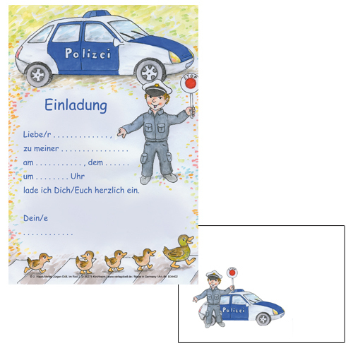 Polizei Einladungsset 12 Stück mit Umschlag