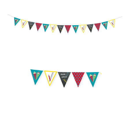 Girlande mit 12 Wimpeln 2-seitig bedruckt aus stabilem Karton mit einem Kunststoffband verbunden,