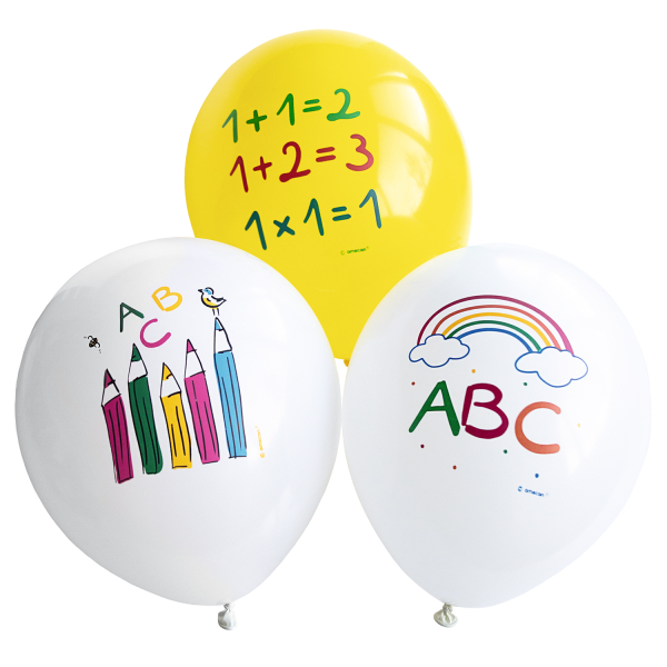 Große Luftballons für den 1. Schultag in den Farben weiß und gelb