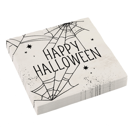 16 Party Servietten mit Motiv Spinnennetz und Schriftzug "Happy Halloween" - für Grusel ist direkt gesorgt.