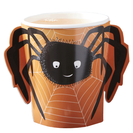 8 Halloween mit 3D Effekt Becher... bei jedem Becher können die Spinnenbeine ausgekappt werden... schöne gruselig....