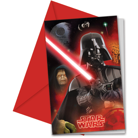 6 Party Einladungskarten Format (14 x 9cm) inkl. mit 6 roten Umschlägen für die Star Wars Party