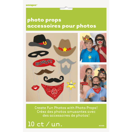 Western Masken um originelle Fotos zu erstellen. Die Masken sind an einem Stock befestigt und können vor das Gesicht gehalten werden oder einfach über dem Kopf, wenn es ein Westernhut ist. Alle Gäste nehmen sich diese Art der Verkleidung und schon hat man ein lustiges Foto.