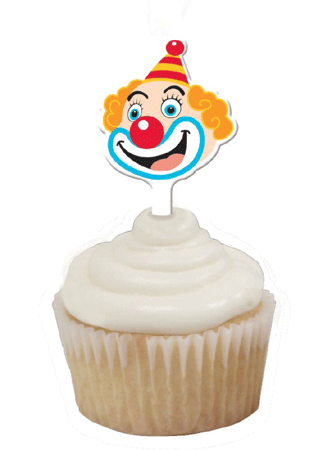 Für die Zirkusparty 12 Picker mit Clownkopf. Wunderbar für Muffins oder Käsewürfel. Die Picker können immer wieder neu verwendet werden.