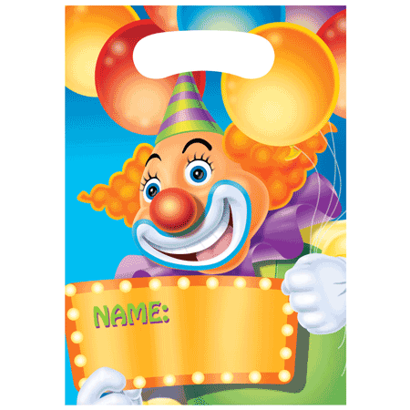 Für die Zirkusparty 8 Mitgebsel Tüten aus Plastik für die Gastgeschenke. Auf den Tüten gibt es ein Namenfeld für die Gastkinder.