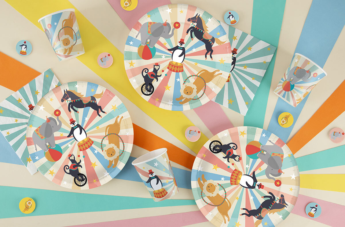 Mein Damen und Herren, liebe Kinder, tretet ein in die zauberhafte Zirkus Welt. Wunderschöne Idee für eine Kinderparty. Sicherlich haben die kleinen Akrobaten sehr viel Spaß bei Ihrer Vorstellung.